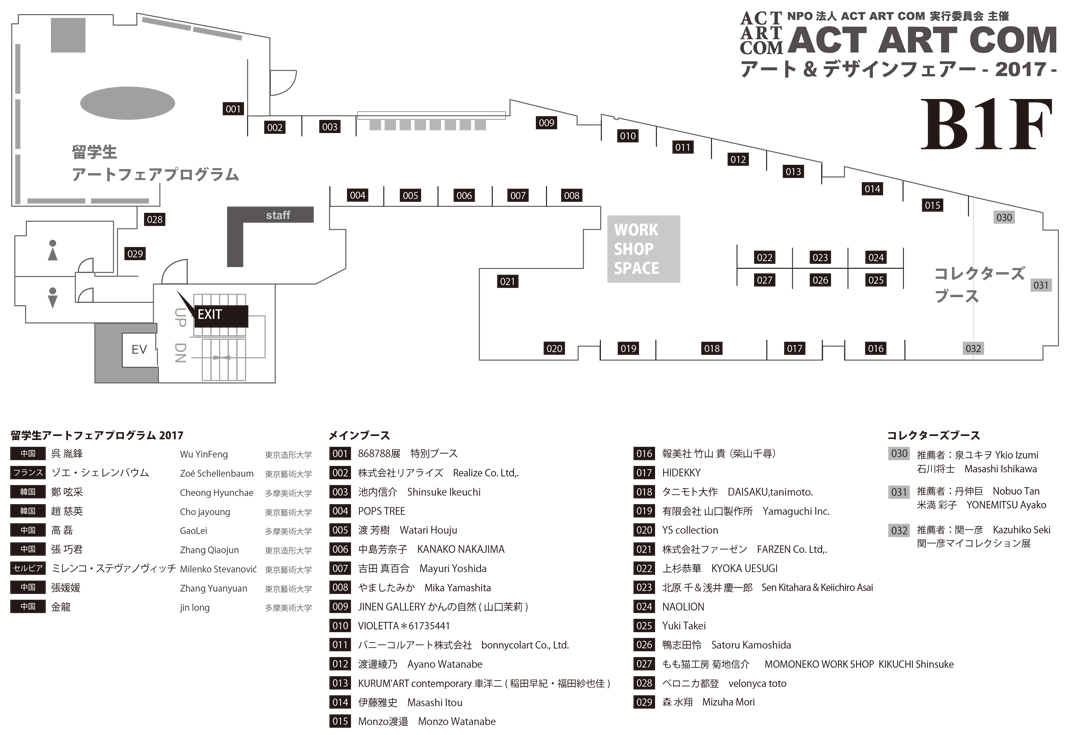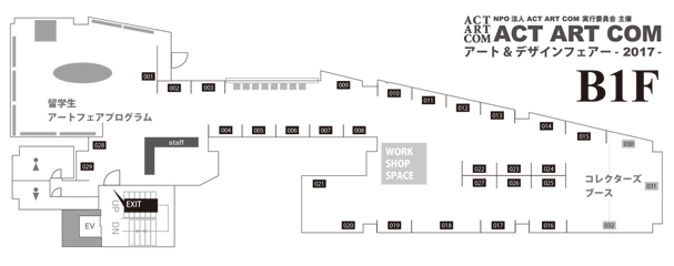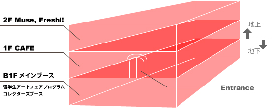 地下1階がメインブース・コレクターブース・留学生アートフェアプログラムブースです