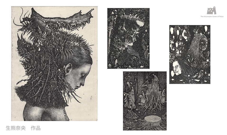 主に銅版画のエッチング技法を用いて異界の風景を描いています。