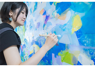 アクリル絵の具を中心に、和紙や箔、日本画で使用する顔料などを使用した、ミクストメディアで平面作品を制作。