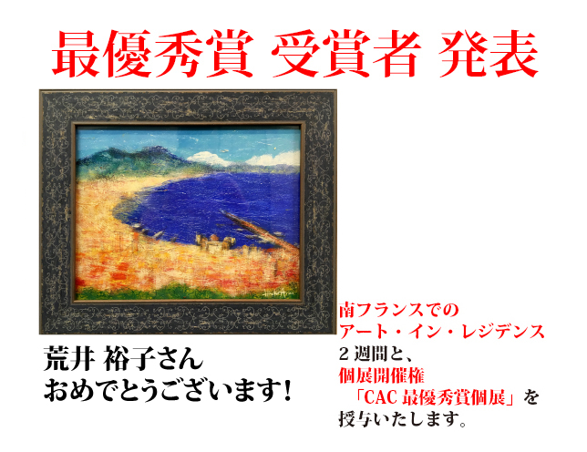 最優秀賞受賞者は南フランスより帰国後、アートコンプレックスセンター2 階のギャラリーにて開催さ