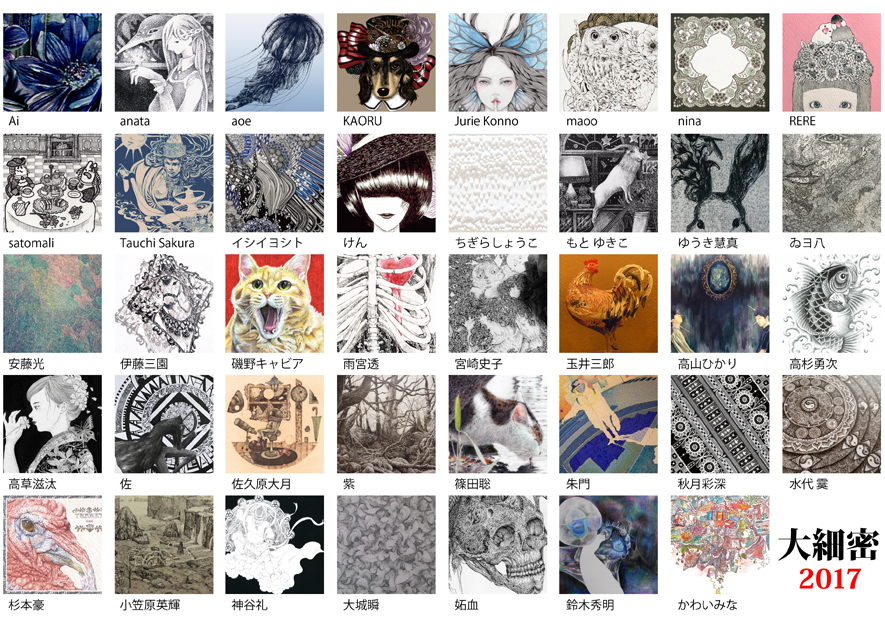 現代のアートシーンにおいて、「細密」という世界観は、多くのアーティストによって様々な形で表現され、一つのジャンルとして確固たる地位を築いています。幾何学的または自然的な表現、濃密に追求されたリアリティーや繊細で緻密なタッチで描き出されるその世界は、時にダイナミックで突き抜けているともいえるでしょう。その世界観は、多くの鑑賞者を虜にする魅力を秘めています。そんな細密な作品・作風を得意とする作家達による大グループ展「大細密展」を今年も開催いたします。今年で6度目を迎える「大細密展」。本年度は会期を1日伸ばし、会場を地下のArtcomplex Hallに移動しました。より迫力のある展覧会となることでしょう。「細密」の新たな可能性と奥深さを皆様に感じていただきたく思っております。