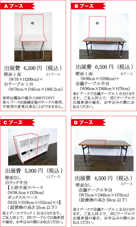 ※参加費には、展示会のDM代、パーティー代、販売手数料、備品貸出費が含まれます。