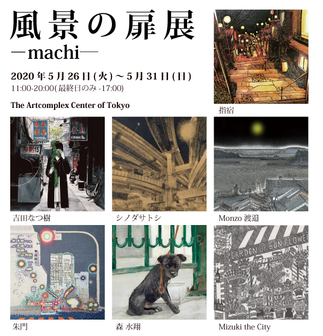 この度、アートコンプレックスセンターでは新企画展「風景の扉展−machi―」を開催致します。 第1回目の展覧会では、風景画の中でも「街・町」をテーマにした作品を展示致します。 描かれた情景に想いを馳せてどうぞご高覧ください。 ![]() ![]() 日程:2020年5月26日(火)-5月31日(日) 11:00-20:00(最終日のみ-17:00) ※展覧会内容が予告なく変更される場合がございます。 最新情報は随時本ページにてご確認ください。 ■展覧会場 Space 会場:The Artcomplex Center of Tokyo (ACT) 住所:〒160-0015 東京都新宿区大京町12-9 2F ACT1 TEL/ FAX:03-3341-3253 HP:http://www.gallerycomplex.com/ ■出展者 シノダサトシ https://twitter.com/rover5000 指宿 https://twitter.com/ibsukionsen Monzo渡邉 http://bellmonzo.sakura.ne.jp/art/works.html 吉田なつ樹 https://galactic-vol2.tumblr.com/ 朱門 http://shumon0225.wixsite.com/shumon Mizuki the City http://www.mizuki-the-city.com Instagramアカウント @mizuki.the.city_gallery 森 水翔 https://mizuha-mori.tumblr.com/ ![]() |