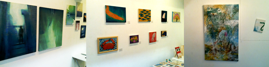 画材や素材の色彩の重なり合いから浮かべることで、あいまい さを残し、 自分自身や、見る人の想像力を開くような作品を目指していま す。