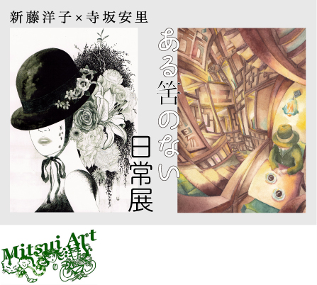 この程ミツイアートでは水彩・ドローイングシリーズの第1回展示として、 寺坂安里・新藤洋子の二人の水彩画家による展示を行います。