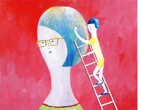 シュールな女の子のイラストを描いています。