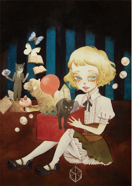 可愛いなかに毒があるような、シュールでメルヘンな絵を目指し、作品を発表。