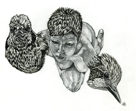 多くの神話や宗教に表される半獣半人のモノたちは、人知を超えた力を持つことが多いですが、 私の描く半獣半人のモノたちは、人間の愚かな部分や弱い部分を強調しているモノたちです。 自分自身の嫌いな部分、人間って愚かだなーと思う部分。