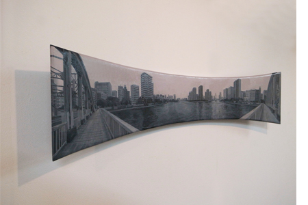 リアルではないリアリティの追求。私の絵画表現の根本は平面空間への興味から発している。 ルネサンスに花開いた遠近法を空間表現の手綱とし東洋の絵画空間の平面性も加味し、日本の主要都市景観や名所旧跡を描写した。 また絵画において鑑賞者は、多くの場合受動的に提示された作品と対峙する場合が多い。 何らかの能動的なアプローチによって変容していく、また積極的に鑑賞者が関係することで様々な発見が出来る絵画形態、リアルな視覚体験を呼びおこす装置としての意味をシェイプドキャンバスに託している。