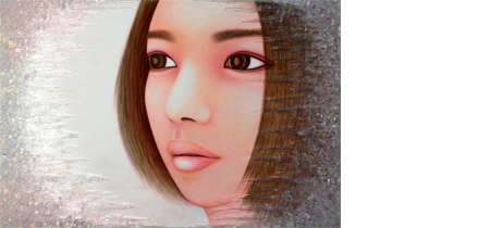 今回の展示では従来の抽象的作品の新作の他、女性の顔をモチーフにグルーでの結晶化を図った作品、グラフィック的作品にグルーを絡めた実験的小品等を展示いたします。