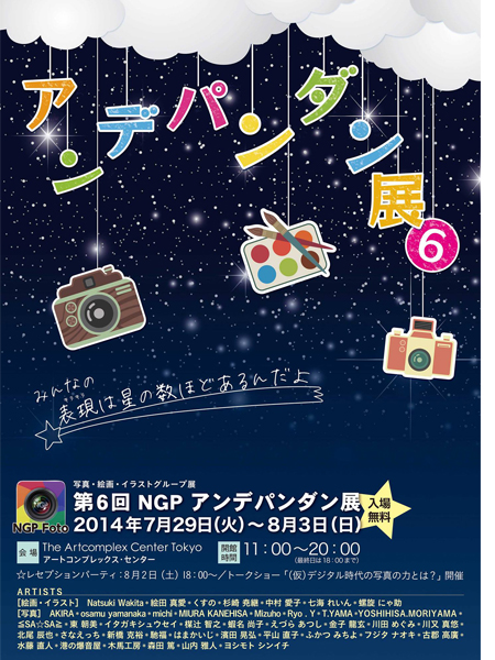 NGP Salon des artistes independants(略称:NGP Foto、代表:金子龍玄)は、2014 年 7 月 29 日 (火)より 8 月 3 日(日)まて、写真、絵画、イラスト等によるグループ展「第 6 回 NGP アンデパンダン展」を、アートコンプレックス・センター・オブ・東京(所在地:東京都新宿区)で開催します。