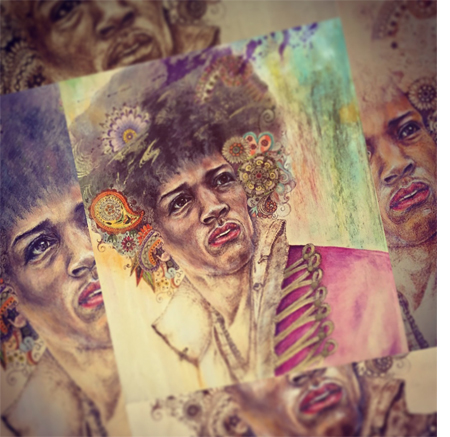 ウッドバーニングで木の板を焼きながら下絵を描き、そこにアクリル絵具、水彩色鉛筆、パステル、クレヨン、コピックと 赴くままに色を重ねていきます。