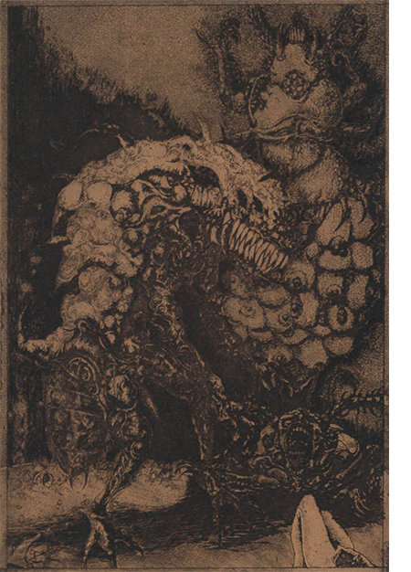 モチーフは様々ですが、いずれも私の思考や感情が、エッチングの線により織られた装飾模様です。