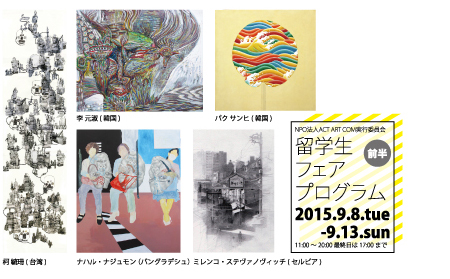 このたびNPO 法人ACT ART COM 実行委員会では、留学生グループ展を開催いたします。7 年に渡って活動してきたA C T およびN P O 法人A C T A R T C O M 実行委員会は、このたび留学生アーティストを日本のアートシーンに紹介するという新規企画を立ち上げることになりました。今までは若手の日本人アーティストのサポート事業を行って参りましたが、今後は世界へと視野を広げ、海外から日本にやってきた留学生アーティストのサポートおよび、留学生アーティストと日本人アーティストを繋ぐ橋渡しが出来たらと考え、このたびの新規企画立案となりました。同企画を通して、留学生アーティストに作品発表の場を提供し、またアジアとの友好を深めるというのが目的です。