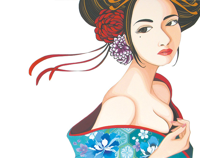 浮世絵を独自の視点で捉え、風刺やエロスをスパイスに現代風にアレンジした作品を展開。
