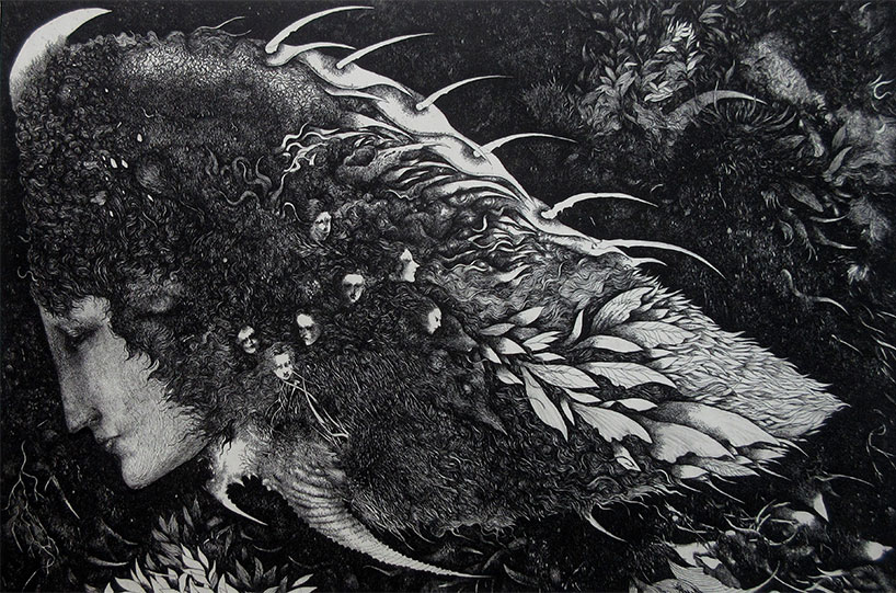 私は銅版画を制作する際、いかに過密に描写する事が出来るか常に考えている。
