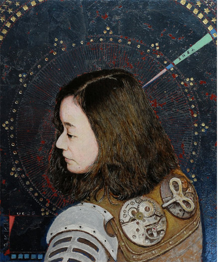 「記憶」とは、光の光芒が織り成す世界。その世界を愛着なくしては語れない。共に過ごした家族、愛用の品々。それらの記憶をツールに作品制作をする。曖昧な記憶を一度解体し、具体物を画面に配しながら記憶の再生を図る。私の頭の中の記憶は、過去から今この瞬間までの時空を飛び交い、ある一点のものをきっかけに増殖していく。そうして生まれたものは、おぼろげな記憶から全く新しい形体となって再現されるのである。