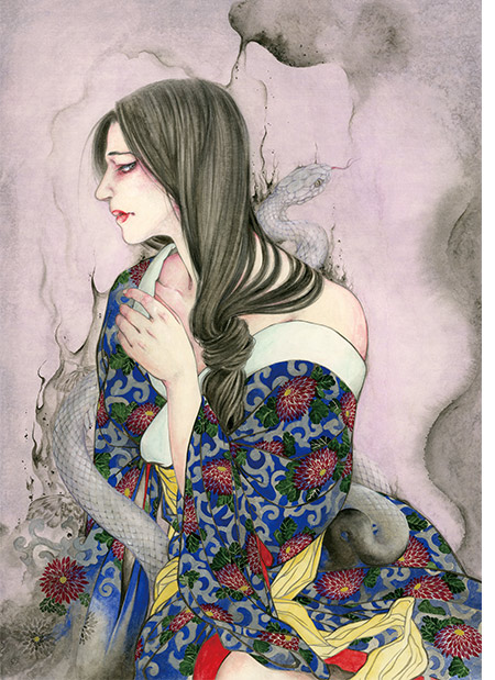 此岸と彼岸の境界線にいる、薄暗くてじんわりと冷たく、曖昧なくせに一瞬強い存在感を放つものを描きたい。