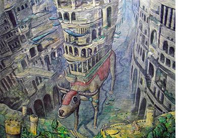 「牛の塔」2008年、キャンバスにアクリル、727×910mm