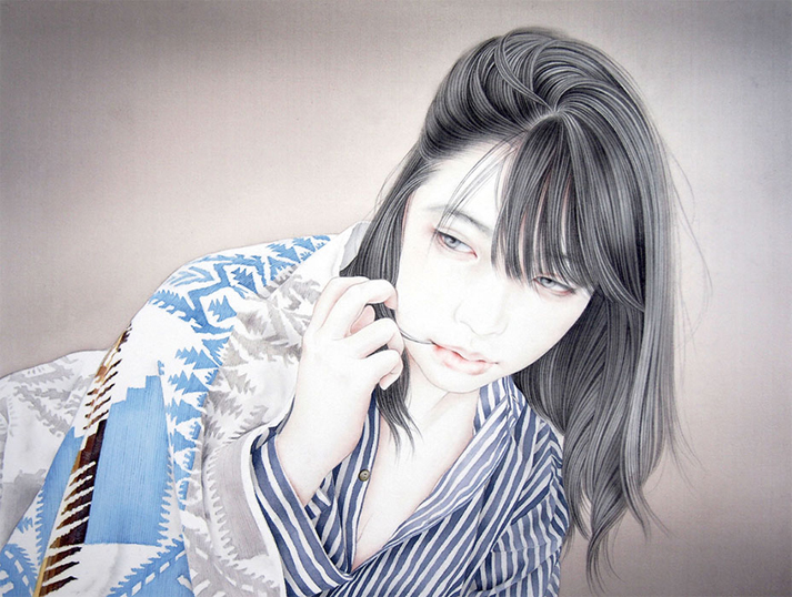 所作や癖を大切にアクリル絵具や墨で女性像を描く