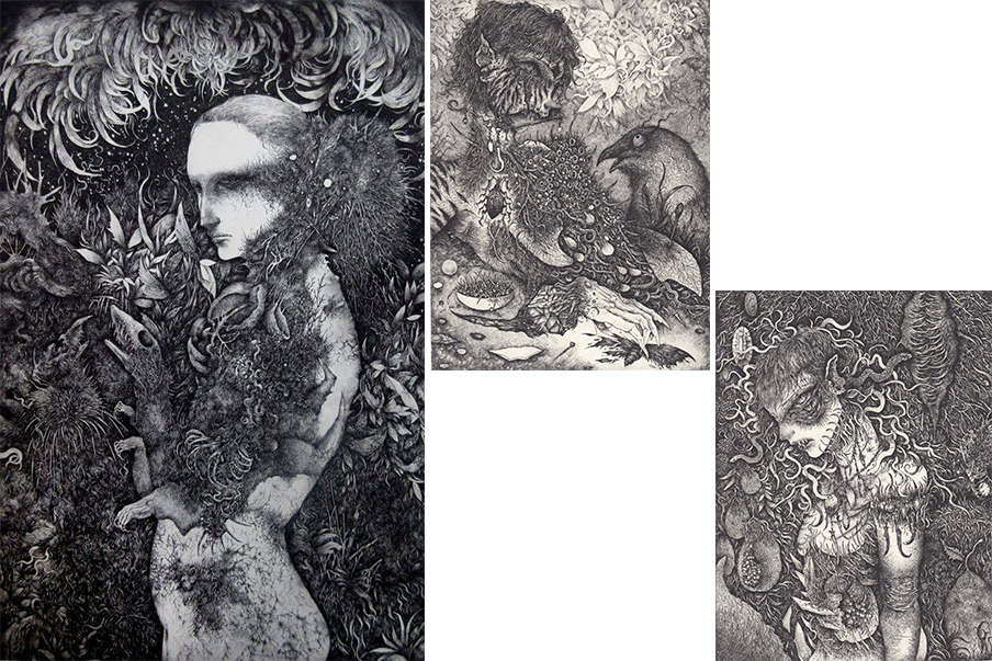 主に銅版画のエッチング技法で異界の風景を描いています。