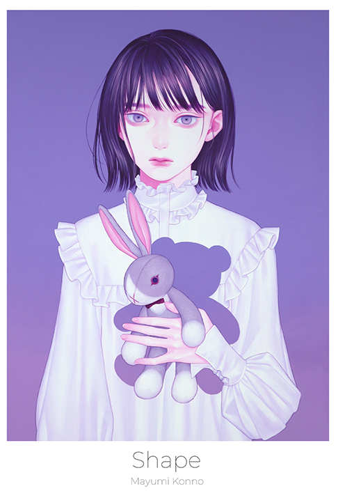 デジタルでの画像編集のような表現を取り入れるなど、人工的に形作られるイメージをキャンバスに描く。