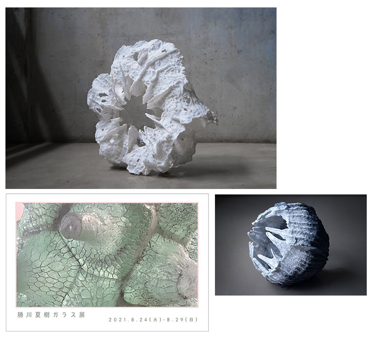 「ガラス」の表情は一般的に知られている以外にも多様であり、制作の中で出会う新しい表情や質感は、発想の源となります。わたしはそこに生き物の印象を重ね合わせ、作品を制作しています。