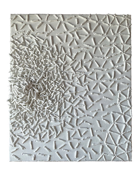 油彩絵具を作品の素材と捉え、素材感を追求した作品を制作している。