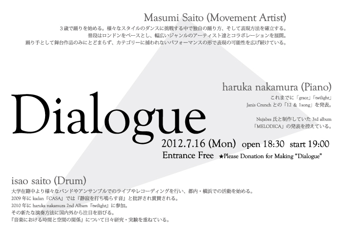 Music:haruka nakamura (Piano) isao saito (Drum)