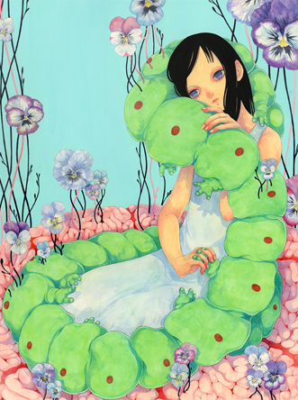 普段目に写らない世界に想いを馳せ、アニミズム的思考を通し少女と生き物が共存する世界を描いている。