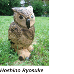 木 という素材は力強くそして暖かいです。その暖かい風合いや量感を生かして作った作品がまた暖かく、自分の心をいやしてくれる存在になります。自分の作りた い気持ちやイメージを大切にしながらモチーフ・木材を選んでいます。見る人の傍にいる存在として、力強さ・癒しを伝えられる作品作りを心掛けています。