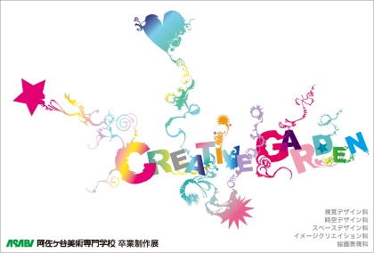 ●展示紹介文 阿佐ヶ谷美術専門学校は、1945 年創立の東京都杉並区にあるデザインとアート を学ぶ3年生の専門学校です。 この度、「CREATIVE GARDEN」というタイトルで 視覚デザイン科 時空デザイン科 スペースデザイン科、イメージクリエイション科 絵画表現科の卒業制作展を開催いたします。 ●オフィシャルHP http://www.asabi.ac.jp