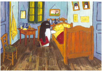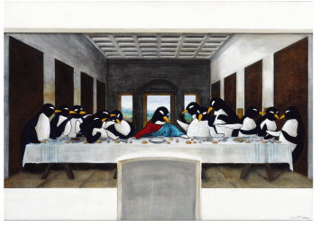 ペンギンをモチーフに、名画をパスティーシュすることで、名画のなかにペンギンを