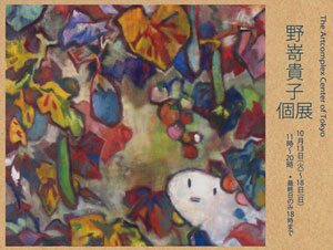 ![]() 野嵜貴子 個展 2009/10/13(tue)-10/18(sun) 11:00-20:00 最終日は18:00まで 2F ACT3 1986年、生まれる 2009年に多摩美術大学油画科を卒業し、 現在はフリーで、映画美術やイラストレーターを務める。 絵には深い意味はなく、 観て、それぞれ好きなように解釈して 感じて下さいませ。 "そこにただ在るもの"でありたいと思います。 活動履歴 2009年 11月 主演・長澤まさみの映画「曲がれ!スプーン」にてセットの壁画を担当。 10月 オーストラリアでのアートフェアーに出展 3月 2009年汎美展 2月 第32回東京五美術大学連合卒業・修了制作展 2008年 7月 銀座にて初の個展開催 他、グループ展多数 | |||