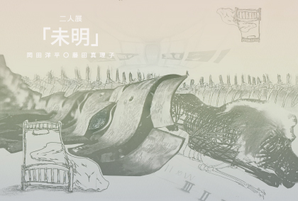 二人展 「未明」 岡田洋平○藤田真理子 「この時間にできることはそれほど多くはないけれど、 明日が来る前に、私達にはやらなければならないことがある」 白い壁、絵、シーツ、銅、いくつかの光とそれを縁取るもの。 画家 藤田真理子と、銅立体作家 岡田洋平による作品二人展。 今回の二人展「未明」では、毎日が移り変わる時、今日から明日の境目を未明と し、その瞬間を切り取った、ということをコンセプトとし、絵画、立体展示によ る空間インスタレーションをお見せします。