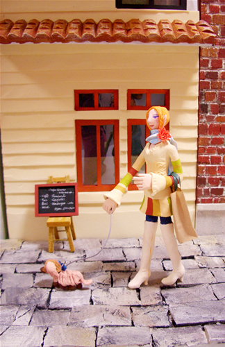 | 180×120cmの中に、小さな街と、そこに暮らす人形を作りました。展示される小さな街は、はどこの街でも、 どこの国でもない未完成の街。 建物も住んでる人達も、とりたてて素晴らしくもなく、ちぐはぐでいい加減です。 街には時計台のある警察庁舎が建っています。 だけどここでの仕事といったら、道案内か、山から下りて来た野生動物を捕獲するか、せいぜい酔っぱらったおじさんをドアの開きっぱなしの留置場に寝せておくか、駐車違反の取り締まりくらい。 一番忙しいのは、年に一度のお祭りで、劇をやらなきゃいけない事です。その向かいにアパートがあります。 その名も、最新式マンション。 かなり古くさい感じの建物ですが仕方ありません。建った時は、最新だったんですから。 街に暮らす小さな彼らを見てみましょう。駅で待つ人、降りた人、切符を買う子供、路線MAPを眺める人。 通りではぶつかって尻餅をついたり、犬のうんこを踏んづけたり、劇場で花束とキスを受け取ったりしています。 何をして、何をしゃべっているのかは、それぞれで想像してみて下さい。 そして実際に見に来て、出来れば、大人の人は中腰になって、目線を作品の地面まで落としてみて下さい。 きっと違った世界に入る事が出来るでしょう。喜んだり怒ったりへこんだり愛したり、当たり前の日常が、理想郷だと信じて。 |