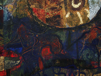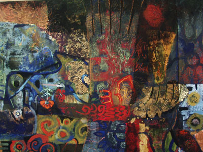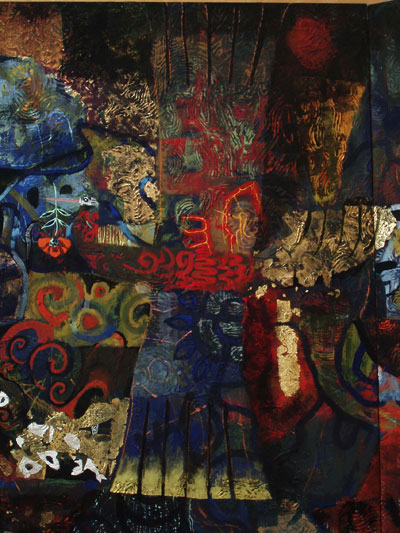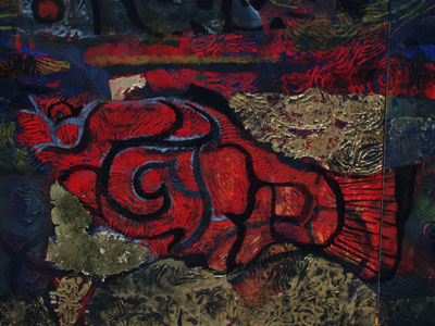 遠い昔、縄文土器をうねり隆起させ躍動させたものは何だったのか。全くのでたらめな物なんて、そう作れるものではなく、必ず作り手の精神を反映するものであるはずだ。おおらかでゆったりとして、それでいて激しく強いもの。きっとそれは自然界のすべての命の営みに脅威と尊敬をもった古代人の、全身の感動の表出ではないか。 複雑で不明瞭な現代社会で場面に応じてうまく型にはまって生きていかなければならないことに、一種のやりきれなさを感じる。人生はもっと感動的なもののはずだ。封をして閉じ込めていた“内なる縄文”が、絵を描くことで一気に表出してきた。やりきれなさを超えたところの自己を創造していけるかもしれない。ルネサンスとしての創造。