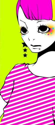 また、ファッション性や、音楽性を秘めた作品作りを心がけ、アートやデザインなど、本来イラストレーションの在るフィールドとは違うカルチャーともリンクを続けている。