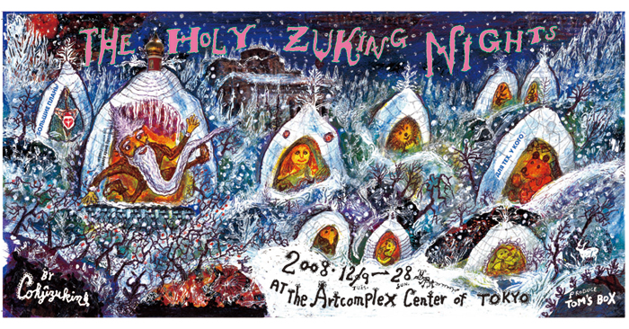 THE HOLY ZUKING NIGHT * 12/13(土) 原マスミ ライブ いずれもPM6:30開場/PM7:00開演 【展覧会】 * 当日券600円/前売券500円 再入場可(小学生以下は無料) ★チケット取り扱い:トムスボックス、アートコンプレックス・センター他 * 12/13(土) 原マスミ ライブ 2,000円 ★チケット取り扱い:トムズボックスお店、トムズボックス事務所