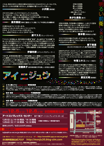 パフォーマンス・ユニット文殊の知恵熱20周年記念公演 「アイ ニジュウ」 |