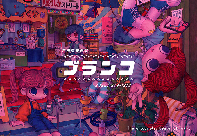 吉田有花個展「ブランコ」 私が描き続けているのは、現実の風景と空想の断片が入り混じり、見えない奥へと続く路地のように広がっていくひとつの「世界」です。 そこには、人の気配や感情が滲む暮らしのかけらが息づき、まだ語られていない記憶や想いが、街の隙間にひっそりと宿っています。 残された傘や敷かれた座布団、貼り紙の文字や手描きのメモ。 そうした小さな痕跡は、そこで暮らす人々の生活や感情を静かに物語ります。 そして、世界を彩るマゼンタの色は、人の内側に静かに流れる温度を映し、現実と空想の境界をふっと浮かび上がらせるでしょう。 こうした世界の街や住人を描き留めることは、 暮らしの断片を人の記憶という未来へそっと残すための、小さな保存の試みです。 同時に、それらひとつひとつに目を向け続けたいという私自身のささやかな願いでもあります。 今回の展示空間は、そんな世界へのひとつの入口です。 街の奥行きや見えない部分をすくい取りながら、ときに現実から「ブランコ」のようにふんわりと浮かぶ瞬間を含んだ情景を並べています。 もしこの場を訪れた方の心の中に、新しい記憶や空想が芽生えるならば、作品たちはその人の中で生き続けるでしょう。 ぜひご自身の暮らしや記憶を重ねながら、街を歩くように、この世界を旅していただければ幸いです。 ■開催期間 2025年12月9日(火) - 12月21日(日) ■開催時間 11:00-19:00 最終日は17:00まで ■入場無料 月曜休館 ■会場:The Artcomplex Center of Tokyo 東京都新宿区大京町12-9 2F ACT1 ![]() ※オンラインショップは初日17時より販売開始いたします。 【プロフィール】 吉田有花 Yuka Yoshida 1996年生まれ。京都府在住。嵯峨美術大学短期大学部美術学科コミックアート分野卒業。 物事の中で対極する2つの要素が混在する街を舞台に、生活空間や人間性を、主にマゼンタの色調で描いています。 X: https://twitter.com/yoshiochan04 instagram : https://www.instagram.com/yukayoshida4/ 【個展】 2017 「ヒューズ」/ The Artcomplex Center of Tokyo / 東京 2018 「ボケムシの目」/ The Artcomplex Center of Tokyo / 東京 2019 「虫の目-BUG EYES-」/ 靜月 Moon of Silence / 香港 「気楽な溶け方」/ The Artcomplex Center of Tokyo / 東京 2020 「愛らしい人」/ The Artcomplex Center of Tokyo / 東京 2021 「生活に夢中」/ SUNABA GALLERY / 大阪 「夢現ダンジョン」/ 自主企画オンライン個展 「ユウユウヂテキ」/ みうらじろうギャラリーbis / 東京 「けんこう」/ The Artcomplex Center of Tokyo / 東京 2022 「おあしす」/ みうらじろうギャラリーbis / 東京 「デンキムロ」/ The Artcomplex Center of Tokyo / 東京 2023 「このままの世界」/ みうらじろうギャラリーbis / 東京 「窓の外」/ SUNABA GALLERY / 大阪 「ぼんやりとユーモアと」/ The Artcomplex Center of Tokyo / 東京 2024 「個人展」/ みうらじろうギャラリーbis / 東京 「One's own Planet」/ 秋刀魚藝術中心 Fish Art Center / 台湾 2025 「ワンダラーズ」/ The Artcomplex Center of Tokyo / 東京 「まどろみと暮らす」/ SUNABA GALLERY / 大阪 「個人展2」/ みうらじろうギャラリーbis / 東京 【グループ展】 2017 「ひなまつり*展 2017」/ondo_tosabori / 大阪 「揺らぎの中のせいとし展」/ 創治朗 / 兵庫 「あたらしい家展」/ 嵯峨美術大学 付属ギャラリー / 京都 2018 「ひなまつり*展 2018」/ ondo STAY&EXHIBITION / 東京 「RGB展」/ AAA GALLERY / 神奈川 「ACT 小品展 2018」/ The Artcomplex Center of Tokyo / 東京 「嗜眠病院」/ ぎゃらりぃ あと / 大阪 「cells -illustration- vol.4」/ DESIGN FESTA GALLERY WEST / 東京 2019 「cells -illustration- vol.8」/ DESIGN FESTA GALLERY WEST / 東京 「吉田有花+ある紗 二人展 区区」/ SUNABA GALLERY / 大阪 「ACT 小品展 2019」/ The Artcomplex Center of Tokyo / 東京 「日本の祭り展」/ 嵯峨美術大学 付属ギャラリー / 京都 「純粋キャラクター批判U」/ SUNABA GALLERY / 大阪 2020 「2020 年明け作品展」/ The Artcomplex Center of Tokyo / 東京 「REMEMBER 〜あの頃〜」/ The Artcomplex Center of Tokyo / 東京 「ACT 小品展 2020」/ The Artcomplex Center of Tokyo / 東京 「裏kawaii」/ SUNABA GALLERY / 大阪 2021 「新春展 2021」/ The Artcomplex Center of Tokyo / 東京 「MyDrawing8」/ The Artcomplex Center of Tokyo / 東京 「ACT 小品展 2021」/ The Artcomplex Center of Tokyo / 東京 「From the 1990s.」/ The Artcomplex Center of Tokyo / 東京 「formation」/ 新宿眼科画廊 / 東京 「冬の小作品展」/ SUNABA GALLERY / 大阪 2022 「Mydrawing 10」/ The Artcomplex Center of Tokyo / 東京 「JAPAN MODERN ART EXHIBITION」/ 333 Gallery / 台湾 「ACT 小品展 2022」/ The Artcomplex Center of Tokyo / 東京 「神戸アートマルシェ2022」/ 神戸メリケンパークオリエンタルホテル / 神戸 「SMILE」/ SUNABA GALLERY / 大阪 「ACT15周年記念展」/ The Artcomplex Center of Tokyo / 東京 2023 「ポストkawaii Y」/ SUNABA GALLERY / 大阪 「あざやかなる道標2」/ みうらじろうギャラリーbis / 東京 「ACT 小品展 2023」/ The Artcomplex Center of Tokyo / 東京 2024 「ACT 新春小品展 2024」/ The Artcomplex Center of Tokyo / 東京 「あざやかなる道標3」/ みうらじろうギャラリーbis / 東京 「こわれてない家」/ The Artcomplex Center of Tokyo / 東京 「ACT小品展2024」/ The Artcomplex Center of Tokyo / 東京 「ポストKawaii : ハ
