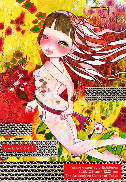 ninko ouzou えがきびと/Egakibito、アーティスト 愛すべき大切な闘いの軌跡、生きる事を活かす為の表現活動。 The Artcomplex Center of Tokyo取り扱い作家。 また、最近では過去の産物(自身の過去絵、ドローイング、生きてきた足跡、経験、思考等)を今に活かす方法を探り、 1枚の絵にいくつもの記憶を重ねた作品群の展開(/改シリーズ) をおこなう。 <個展> 2025年「I am my story, I am yours too」(RED CUBE GALLERY/東京) 2024年「適従しんしん」(The Artcomplex Center of Tokyo/東京) 2023年「懐柔軌跡」(The Artcomplex Center of Tokyo/東京) 「Life is a series of layers」(RED CUBE GALLERY/東京) 2022年「NEUTRAL」(The Artcomplex Center of Tokyo/東京) 2021年「日常前線」(The Artcomplex Center of Tokyo/東京) 2020年「PRAY FOR xxx」(The Artcomplex Center of Tokyo/東京) 2019年「記臆軌跡」(The Artcomplex Center of Tokyo/東京) 2018年「抒情媒体」(The Artcomplex Center of Tokyo/東京) 2017年「Re: 記臆」(The Artcomplex Center of Tokyo/東京) 2016年「Re: born」(The Artcomplex Center of Tokyo/東京) 2015年「xx ing xx」(The Artcomplex Center of Tokyo/東京) 2014年「わすれめ むすびめ たねばらし」(The Artcomplex Center of Tokyo/東京) 2013年「Colars」(The Artcomplex Center of Tokyo/東京) 2012年「ざわさめ」(The Artcomplex Center of Tokyo/東京) 2011年「孵化風化苗床」(The Artcomplex Center of Tokyo/東京) 「Naedoko to Naru Tabi no Tochu -Way to the Deep Bed-なえどこ と なる 旅の途中」(70MANTAS/東京) 2010年「ほうせんか」(The Artcomplex Center of Tokyo/東京) 2008年「記臆(オクスルコトナクシルス)」(The Artcomplex Center of Tokyo/東京) 2007年「融合 と 狭間の最中。その先」(HIGURE 17-15cas/東京) 「記憶 と 融合 と 狭間の最中」(四ッ谷and ZONE/東京) 2006年「風と色彩の嵐」(アパートメントストア 赤い部屋/静岡) 2005年「 In a Trance, Red or Black」(Lunarbase Gallery/NY Williamsburg) 「Ninko Ouzou展2005 赤い部屋●対」(ギャラリーコンシール/東京) 「Ninko Ouzou展2005-愛の形」(STUDIO-ZONE/東京) 2004年「優しさと狂気」(無寸草/東京) 「Ninko Ouzou paintings」(Lunarbase Gallery/NY Williamsburg) 「2001-2004 ninko ouzou drawing展」」(青森 弘前) 「ninko ouzou spring展」(西荻窪眼鏡屋glass工房602/東京) 2003年「記臆。展」(小野画廊/東京) 2002年「→→ouzou ninko展←←」(デザインフェスタギャラリー/東京) 他国内外問わず、アートフェア、グループ展示多数。 <賞歴> 2025年 現代絵画公募展 第50回記念青枢展 ペベオ賞 2024年 現代絵画公募展 第49回青枢展 優秀賞一般 2023年 現代絵画公募展 第48回青枢展 優秀賞一般 2006年 ワンダーシード2006入選 2003年 Williamsburg WAH Center and Lunarbase Gallery「characterism」mirai賞/NY 作家在廊日はSNS等でお知らせ致します。 ◎X: https://twitter.com/ninkoouzou ◎FaceBook: http://www.facebook.com/ninkoouzou.kemozou ◎Instagram: https://www.instagram.com/ninkoouzou/ ◎Blog: http://ameblo.jp/ninkoouzou/ |