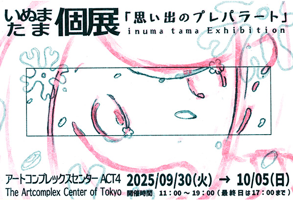 いぬま たま inuma tama https://www.instagram.com/inumatama/ https://twitter.com/inumatama 【活動の記録】 2017年 デザインフェスタvol.46 出展 2018年 東京家政大学家政学部造形表現学科卒業 2019年 グループ展「かせいの10人くらい展 すぐにたどり着くよ」(ギャラリー心/上野) 2020年 グループ展「かせいの20人くらい展 またあえたね」(デザインフェスタギャラリー原宿) 2021年 ギャラリー主催企画展「ペン画の世界展2021〜第T画〜」(AAA GALLARY) グループ展「かせいの15人くらい展 いつもそこにあるよ」(デザインフェスタギャラリー原宿) ライブイベントゲスト出展「夜桜ファーストミニアルバム“嘘を想う”リリースライヴ『katharsis』」(Sound Stream sakura) 2022年 グループ展「かせいの15人くらい展 まだここにいるよ」(デザインフェスタギャラリー原宿) 個展「ずっとどこかを探してるかも」(デザインフェスタギャラリー原宿) 2023年 グループ展「かせいの20人くらい展 何時になっても昨日の続き」(デザインフェスタギャラリー原宿) ギャラリー主催企画展「‐Aquarelle12‐」(アートコンプレックスセンター東京) ジャパンクリエイターズ 制作コラム掲載(Illustrator FILE:第107回) ギャラリー主催企画展「‐Aquarelle13‐」(アートコンプレックスセンター東京) 2024年 ギャラリー主催企画展「ミニ額展2024」(アートコンプレックスセンター東京) グループ展「かせいの20人くらい展 いつかはきっと大丈夫」(デザインフェスタギャラリー原宿) グループ展「第98回展絵画部企画展 新しい眼」(国立新美術館) ギャラリー主催企画展「‐Aquarelle14‐」(アートコンプレックスセンター東京) ギャラリー主催企画展「‐Aquarelle15‐」(アートコンプレックスセンター東京) 2025年 ギャラリー主催企画展「新春小作品展2025」(アートコンプレックスセンター東京) グループ展「かせいの20人くらい展 明日になっても昨日の続き」(デザインフェスタギャラリー原宿) ギャラリー主催企画展「‐Aquarelle16‐」(アートコンプレックスセンター東京) 個展「思い出のプレパラート」(アートコンプレックスセンター東京) |