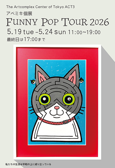 アベミキ個展 「FUNNY POP TOUR 2026」 2026年、ファニーでポップなツアー開催。ハッピーな気持ちになってもらえたら私もハッピー。 楽しい絵を描きたい。 楽しく生きていきたい。 みんなの笑顔を見ていたい。 私たちの生活は平和の上に成り立っている。 だから平和を願っている。 ・作家プロフィール 武蔵野美術大学基礎デザイン学科卒業 動物をモチーフにカラフルでポップな作品を制作。「遊び心」を大切にしています。 私の作品を見て笑っている方を眺めることが何よりの喜び。 全国百貨店にてオリジナル版画の販売から始まり、現在は個展や企画展、イベントなど展示を中心に活動。 オーダー作品も随時受付中です。 instagramURL https://www.instagram.com/abmickey_art 1998オリジナル版画の制作 全国百貨店にて販売 個展 2005 「ZOROME」/ WHITE CUBE PB / 大阪 2007「アベミキ展」/ and-zone / 東京、新宿 「空想LOVERS」/ The Artcomplex Center of Tokyo/東京、新宿 2008「イロとガラスとドウブツと」/ The Artcomplex Center of Tokyo/東京、新宿 2012「MIKI’S HOUSE」/ The Artcomplex Center of Tokyo/東京、新宿 2013「IN YOUR LIFE」/ The Artcomplex Center of Tokyo/東京、新宿 2014「Color Factory 新宿Artcomplex Center店」/ The Artcomplex Center of Tokyo/東京、新宿 2015「どうぶつおもちゃばこ」/ The Artcomplex Center of Tokyo/東京、新宿 2016「FUNNY POP TOUR 2016」/ The Artcomplex Center of Tokyo/東京、新宿 2017「FUNNY POP TOUR 2017」/ The Artcomplex Center of Tokyo/東京、新宿 2018「FUNNY POP TOUR 2018」/ The Artcomplex Center of Tokyo/東京、新宿 2019「FUNNY POP TOUR 2019」/ The Artcomplex Center of Tokyo/東京、新宿 2020「FUNNY POP TOUR 2020」/ The Artcomplex Center of Tokyo/東京、新宿 2021「FUNNY POP TOUR 2021」/ The Artcomplex Center of Tokyo/東京、新宿 2023「FUNNY POP TOUR 2023」/ The Artcomplex Center of Tokyo/東京、新宿 2024「FUNNY POP TOUR 2024」/ The Artcomplex Center of Tokyo/東京、新宿 グループ展 東京都美術館、ACT、中目黒MDPギャラリー、吉祥寺永谷ギャラリー、軽井沢ニューアートミュージアム、大阪イロリムラギャラリー、 TSUTAYA BOOKSTORE、高円寺LOCAL GALLERY BOOKS、池袋オレンジギャラリー その他 |