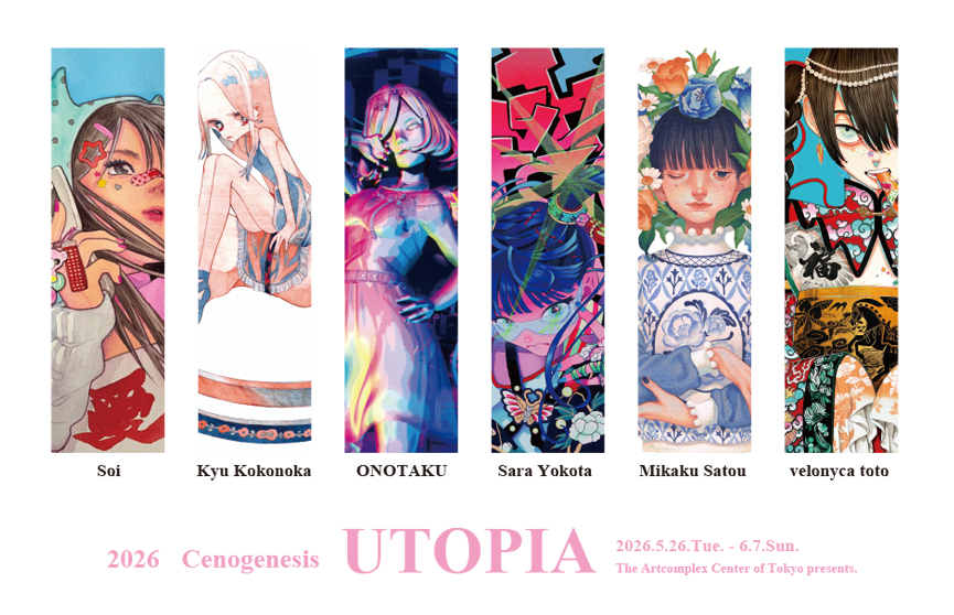 ![]() The Artcomplex Center of Tokyo presents. Cenogenesis UTOPIA 2015年に開催されたUTOPIA、UTOPIA Hugeの流れを受けて、この度新たに「Cenogenesis UTOPIA」として開催いたします。 <過去のコンセプト> ――内包するユートピア(理想郷) は、創作された世界の中にのみ存在し、現実世界には存在しない。 本展は観る者をユートピアの中へと誘うきっかけとしていただきたい。―― 開催から10年が経ち、理想郷について改めて考察しました。日本はガラリと音を立てて変わっていました。 正しくは、変わり始めていた部分がパンデミックによって加速した形になるのでしょう。現在の社会は、果たして理想の社会でしょうか。 UTOPIAの由来はギリシャ語の「どこにもない場所」であり、文字通りに存在しない。達成不可能な理想の場所を示しています。 くしくもユートピアは、想像上の理想的な世界と概要されます。 わたしたちは作者の作品の中のみに存在する世界、その場所へ足を踏み入れる方法を探します。 みなさまの理想的な世界に想いを馳せて、作家の思い描く”UTOPA"をご高覧いただけましたら幸いです。 ◆展覧会概要 会 期:2026年5月26日(火)〜6月7日(日) 11:00-19:00※最終日は17:00まで 月曜休館/入場無料 オンラインショップは5/26(火)17:00から掲載いたします。 会 場:The Artcomplex Center of Tokyo (ACT) 160-0015 東京都新宿区大京町12-9 2F ACT5 TEL/FAX 03-3341-3253 ◆作家:ソイ | 九花きゅう | ONOTAKU | 横田紗礼 | 砂糖みかく | ベロニカ都登 ◆-----------------------------------------◆ ソイ Soi 今の時代にはさまざまな少女たちが存在しますが、そのスタイルは外見だけではなく、それぞれ の価値観や憧れ、精神世界の在り方を映し出すものだと考えています。コーデの奥には、女の子 たちが思い描く理想の風景や、心の中にひそやかに存在する桃源郷が広がっています。 本作では、視点によってイメージが変化するレンチキュラーという印刷を重ねて表現していま す。 見る方向を変えることで、少女の外側の姿と、その内側に広がるもう一つの世界が交互に立 ち現れます。 ひとつの画面の中に、見えているものと、まだ見えていないものが同時に存在して います。 このような少し遊び心のある方法を通して、少女たちがそれぞれに抱く、独立していて多様な精 神のUTOPIAを感じていただければ幸いです。 1998年生まれ。中国・広東出身。 2020年末に来日し、現在は東京を拠点に制作活動を行う。 レトロな空気感と少女像を軸に、イラストレーションを中心とした作品を制作している。 2020 Guangdong Baiyun University Digital Media Art 卒業 2024 東京デザイナー学院 イラストレーション学科 イラストレーション専攻 卒業 グループ展 2023 「Girls展」Boji Gallery、東京 2024 「Hand Power展」 Boji Gallery、東京 「青枢選抜展」東京芸術劇場、東京 2025 「Original Girls Exhibition 2025」AAA Gallery、横浜 「ART Nexus Exhibition/青枢会50th記念」アートコンプレックスセンター、東京 「第60回青枢展」東京都美術館、東京 公募展 2023 「第48回青枢展」東京都美術館、東京 2024 「第49回青枢展」東京都美術館、東京 2025 「第60回青枢展」東京都美術館、東京 受賞歴 2023 「第48回青枢展」一般部門優秀賞受賞 2024 「第49回青枢展」ファンタジーアート賞受賞 「DESIGN JOB2023卒業制作展」優秀賞受賞 2025 「第60回青枢展」準会員優秀賞受賞 ◆-----------------------------------------◆ 九花きゅう / Kokonoka Kyuu 関東在住。赤青色鉛筆で描いてます。 人物と植物をメインに2色だけの世界を描いてます。 ◆-----------------------------------------◆ ONOTAKU 2012年 :東北芸術工科大学 大学院 修了 [ 主なグループ展 ] 2022年TOUGENは何処?鴻崎正武退任記念ゼミ展/ゆう画廊/(東京都) ━ THE NAKED WOMEN ━ GINZA ?ボニータ?!/Artglorieux GALLERY OF TOKYO/(東京都) YoungArtTOHOKU /ギャラリーエイト/(宮城県) 涼風会展/美岳画廊/(東京都) 2023年小さな箱庭から-ONOTAKU個展 美岳画廊/(東京都) 大丸マチエール展 大丸東京美術画廊/(東京都) 2024年 ピッコリーノ展 /美岳画廊/(東京都) ?私のビバリウム?ONOTAKU個展/北岡技芳堂/(愛知県) 2025年 ARTOFMIKU /バーニーズニューヨーク(兵庫県・福岡県) -廻る箱-ONOTAKU個展 美岳画廊/(東京都) KARUIZAWA NEW ART MUSEUM/軽井沢ニューアートミュージアム/(長野県) ◆-----------------------------------------◆ 横田紗礼 / Yokota Sara 日本古来のモチーフを取り入れつつ、ポップさと強さを兼ね備えた迫力ある作品を制作している。 主な画材はアクリルガッシュ。蛍光色を散りばめた鮮やかな色使いが特徴。武蔵野美術大学視覚伝達デザイン学科卒業。東京在住。 【略歴】 2016 作家活動を開始 数多くの企画展に参加 2017.3 個展「ヨコタサラ展」 2018.1 新国立美術館「アジア創造美術展2018」にて優秀賞受賞 2018.2 個展「少女性〜少女たる所以〜」 2018.3 個展「平均台上の少女」 2018.12 個展「ロケットえんぴつ」 2019.3 武蔵野美術大学視覚伝達デザイン学科卒業 2019.12 佐藤佐吉賞2019 優秀宣伝美術賞受賞 2020.1 個展「MVP」 2021.7 グループ展「the young artists」中国 野松ギャラリー 2021.9 個展「サビ侘ビ」新宿眼科画