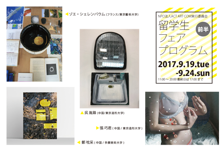 このたびNPO 法人ACT ART COM 実行委員会では、留学生グループ展を開催いたします。9年に渡って活動してきたA C T およびNPO 法人ACT ART COM 実行委員会は、昨年より、留学生アーティストを日本のアートシーンに紹介するという企画を立ち上げました。